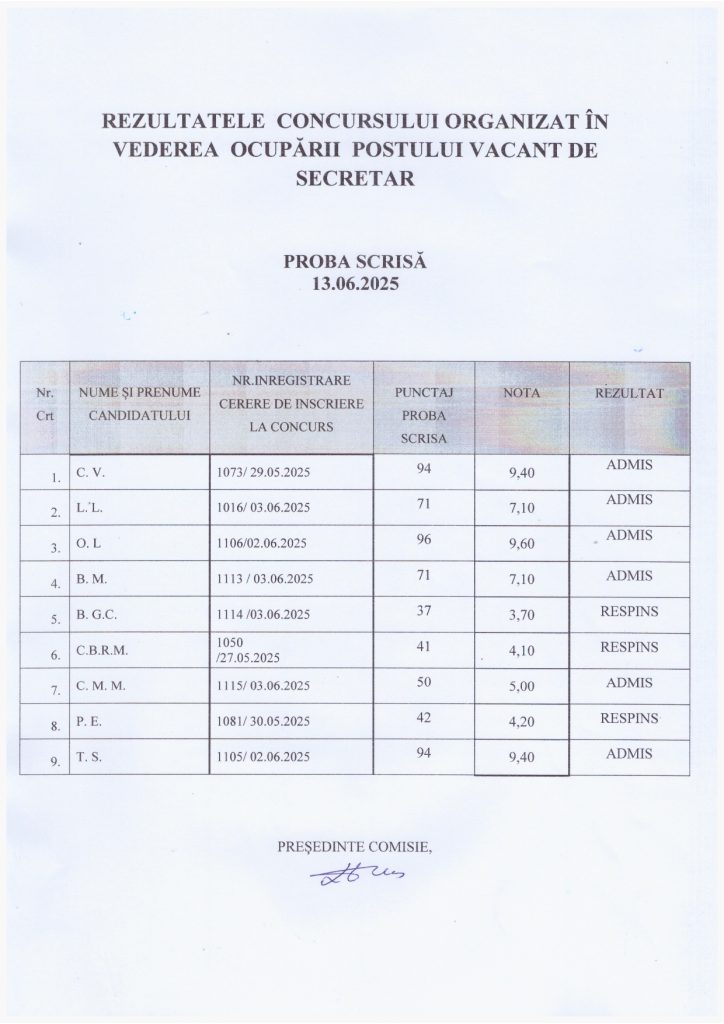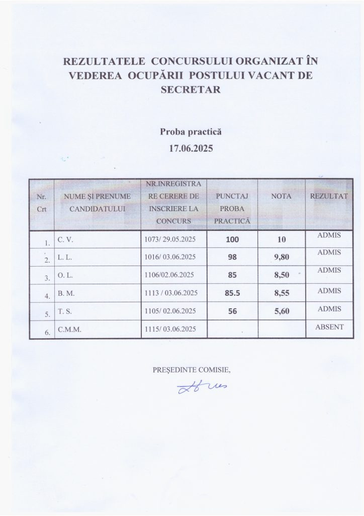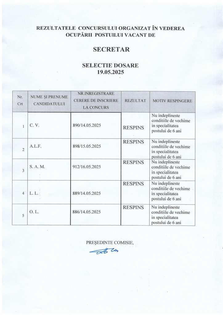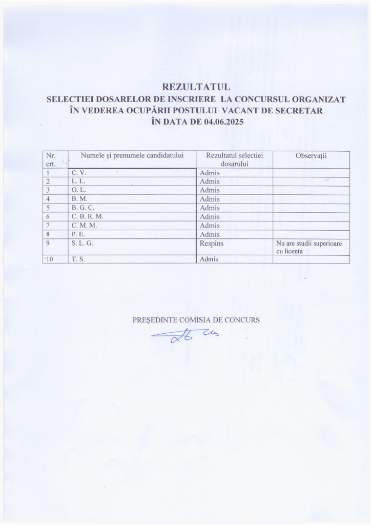 ANUNȚ CONCURS SECERTAR – 1 normă